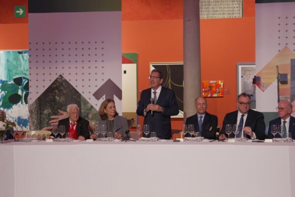 De Izq. a Dcha: María Rotondo, Co-directora of IE University Sustainability Your Competitive Advantage Program. consejera de Telefónica y miembro de la Comision de Sostenibilidad; Padre Ángel García, presidente de Mensajeros de la Paz; Antonio Pulido, residente de la Fundación Cajasol; Enrico Letta, primer ministro de Italia (2013-2014); Arturo Bernal, consejero de Turismo y Andalucía Exterior; y Aldo Olcese, presidente de la Asociación Nacional Sociedad Civil Ahora y del Comité Organizador del IV Congreso Nacional de la Sociedad Civil.