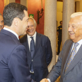Por eso tenemos claro que la sociedad en conjunto y la sociedad civil, como se le denomina, es parte fundamental de nuestro eje de referencia para gobernar. Así que, querido presidente, muy honrado de que nos hayas traído este IV Congreso aquí a la ciudad de Sevilla, a la capital de Andalucía. Espero, deseo y además estoy convencido de que habréis pasado una experiencia que espero haya sido positiva en los días que hayáis estado por aquí. Y espero también que no sea el último, que vuestra entidad vuelva a nuestra tierra a trabajar con nosotros, que, por supuesto me envíes el ejemplar, que, seguro que va a ser un material útil en muchas de las decisiones, muchas de las intervenciones, muchas de las reflexiones que tenemos que hacer tanto mi gobierno como yo. Y por supuesto, si me invitas a esa presentación en la Cámara Alta, intentaré estar y participar en un evento que ya he visto algunos años en medios de comunicación, y sin duda alguna es un evento de gran importancia también para todos nosotros.