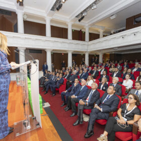 Somos la segunda comunidad autónoma con más empresas. Hemos superado recientemente a la comunidad autónoma de Madrid, nos queda todavía Cataluña por superar, pero ¿por qué digo esto? Porque es muy importante, y estoy seguro de que esto lo van a compartir todos ustedes, somos los primeros en trabajadores autónomos, pero es muy importante que haya empresa. Es muy importante que la iniciativa social en modo de empresa se escenifique en la sociedad. Solo se avanza en las sociedades modernas si el talento que hay en esas sociedades y la iniciativa que hay en esas sociedades se plasma en modo de empresa, mediana, pequeña, pero que son capaces de proyectar su capacidad productiva y por tanto hacer avanzar y progresar la sociedad.