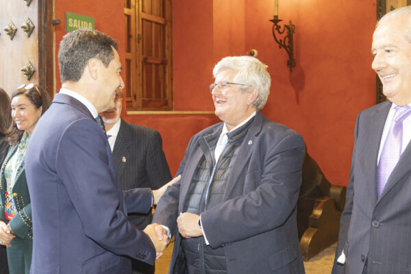 Juan Manuel Moreno Bonilla, presidente de la Junta de Andalucía y José Ramón Calvo, Catedrático EU de Educación para la Salud de la Universidad de Las Palmas. Académico Numerario y presidente del Instituto de Cooperación Internacional de la Real Academia Europea de