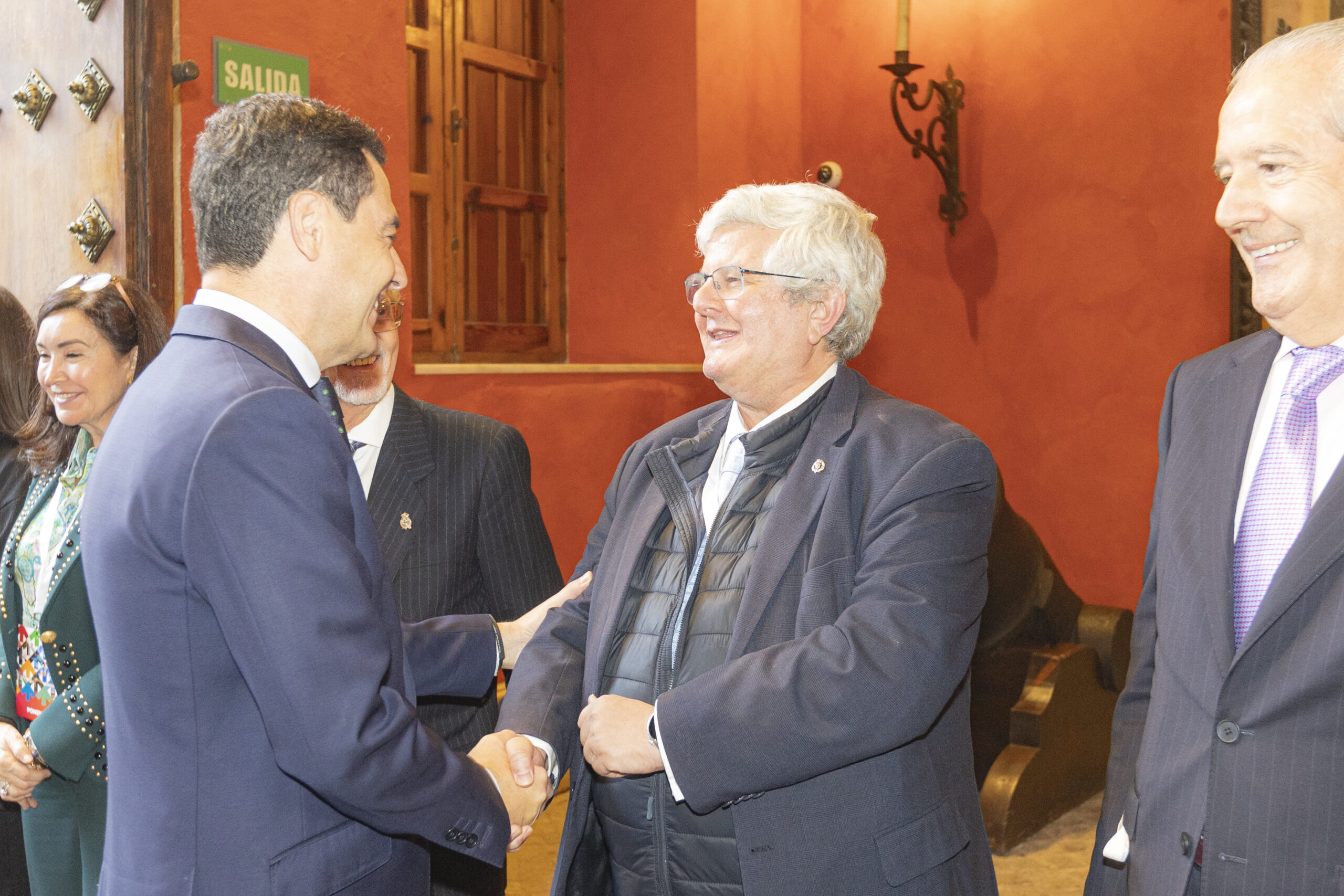 Juan Manuel Moreno Bonilla, presidente de la Junta de Andalucía y José Ramón Calvo, Catedrático EU de Educación para la Salud de la Universidad de Las Palmas. Académico Numerario y presidente del Instituto de Cooperación Internacional de la Real Academia Europea de