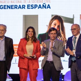 - Montserrat Hernández, Directora de Tribuna Grupo de Comunicación; Antonio Garrigues-Walker, presidente de la Fundación Garrigues; José Luis Martínez-Almeida, Alcalde de Madrid; y Aldo Olcese, Presidente del III Congreso Nacional de la Sociedad Civil