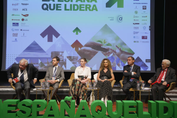 De Izq. a Dcha: Fernando Jauregui, periodista; Sergio Sayas, diputado del Partido Popular; Sofía Iturbe, Fundadora de Libeen Smart Housing. II Premio Líder Joven de la Sociedad Civil 2024; María Eugenia Alcántara, subdirectora General Inmigración y Movilidad Internacional del Ministerio de Inclusión, Seguridad Social y Migraciones; Julián Sánchez Melgar, Magistrado de la Sala Segunda del Tribunal Supremo; y el Padre Ángel García, presidente-Fundador de Mensajeros de la Paz-Edad Dorada