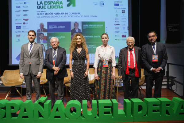 De Izq. a Dcha: Sergio Sayas, diputado del Partido Popular; Fernando Jauregui, periodista; María Eugenia Alcántara, subdirectora General Inmigración y Movilidad Internacional del Ministerio de Inclusión, Seguridad Social y Migraciones; Sofía Iturbe, Fundadora de Libeen Smart Housing. II Premio Líder Joven de la Sociedad Civil 2024; Padre Ángel García, presidente-Fundador de Mensajeros de la Paz-Edad Dorada; y Julián Sánchez Melgar, Magistrado de la Sala Segunda del Tribunal Supremo.