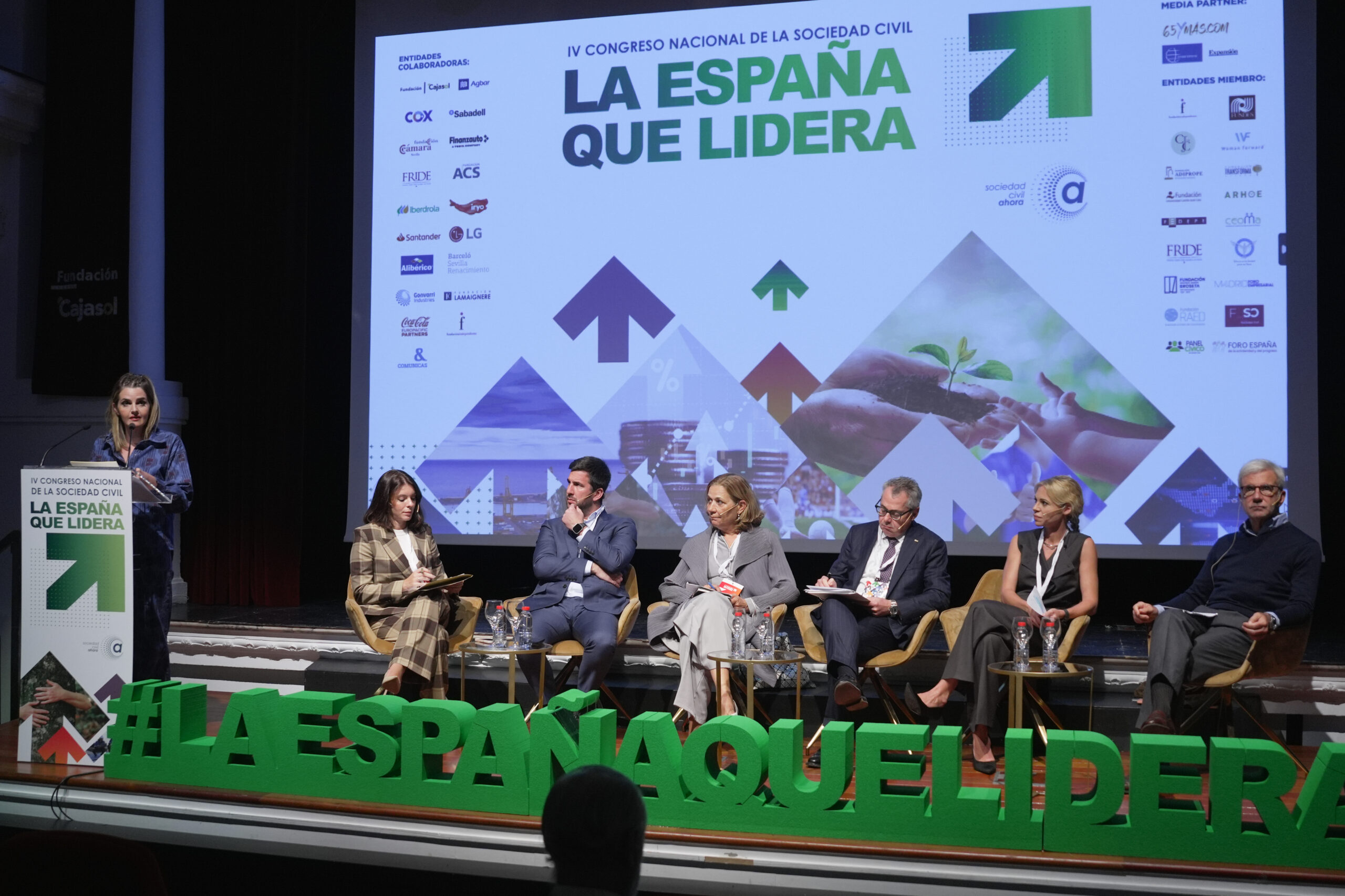 De Izq. a Dcha: Montserrat Hernández, directora de Tribuna Grupo de Comunicación. I Premio Líder Joven de la Sociedad Civil 2023; Pierre Nicola Fovini, CEO de FINANZAUTO y vicepresidente de STET; Enrique Riquelme, presidente del Grupo Cox; María Rotondo Urcola, co-directora of IE University Sustainability Your Competitive Advantage Program. Consejera de Telefónica y miembro de la Comision de Sostenibilidad; María González Armero, consejera y directora de Marketing y Sostenibilidad de Alibérico; y Juan Costa Climent, ministro de Ciencia y Tecnología (2003-2004). Líder independiente en sostenibilidad global. Atril: Sheila Hernández, periodista y escritora. Presentadora de la mesa
