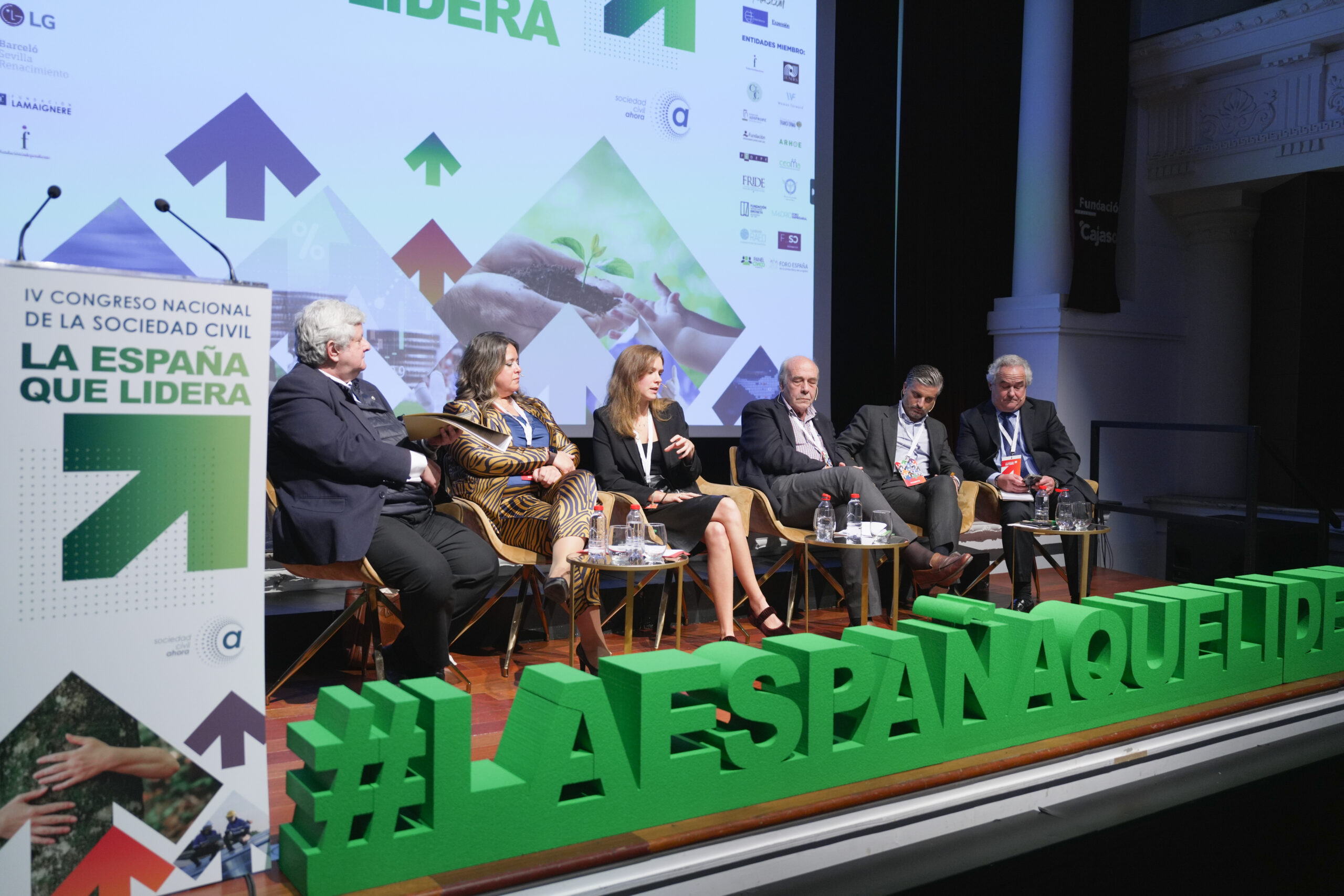 De Izq. a Dcha: José Ramón Calvo, Catedrático EU de Educación para la Salud de la Universidad de Las Palmas. Académico Numerario y presidente del Instituto de Cooperación Internacional de la Real Academia Europea de Doctores -RAED-; Vanessa Muñoz, presidenta de la Asociación de Empresarias de Sevilla; Alba Rocafort, consultora y emprendedora. Cofounder en FABBRIC; José Luis Fernández Santillana, presidente de CEOMA (Confederación Española de Organizaciones de Mayores; Antonio Magraner, secretario general de la Confederación Española de Asociaciones de Jóvenes Empresarios -CEAJE-. Secretario General de la Federación Iberoamericana de Jóvenes Empresarios -FIJEA-; y Francisco Mesonero, director general de la Fundación & Sostenibilidad Grupo Adecco