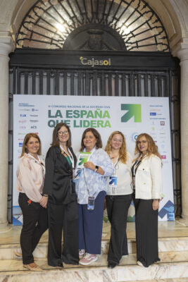De Izqda. a Dcha: Maribel Arroba González, Staf de la Asociación Nacional Sociedad Civil Ahora; Paqui Rodríguez-Bobada López, Directora Ejecutiva de la Asociación Nacional de la Sociedad Civil; María Martínez Álvarez, Comunity Manager de la Asociación Nacional Sociedad Civil Ahora; Sandra Ramón, Managing Director en VB Group; y Mónica Palacios, Staf de la Asociación Nacional Sociedad Civil Ahora