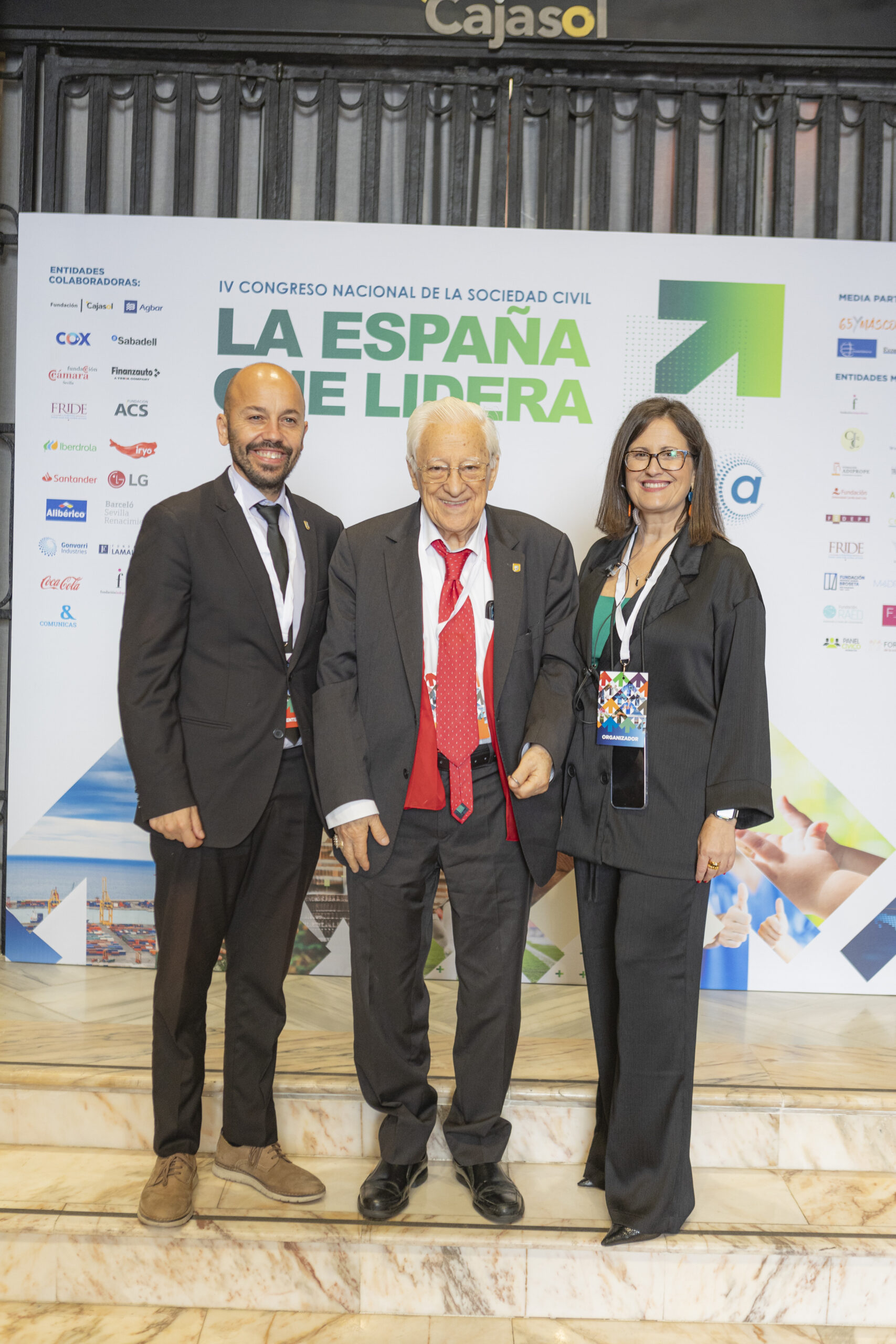 De Izqda. a Dcha: Sergio Mella, Director General de Mensajeros de la Paz; Padre Ángel García; y Paqui Rodríguez-Bobada López, Directora Ejecutiva de la Asociación Nacional de la Sociedad Civil
