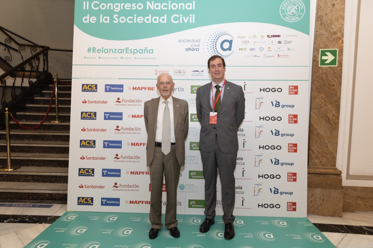 Ignacio Buqueras i Bach, presidente de ADIPROPE; Miguel Pérez Frayle, patrono de la Fundación Independiente