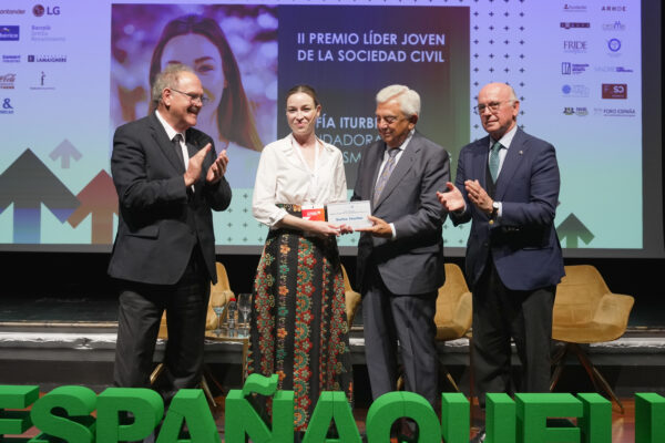 De Izq. a Dcha: Sofía Iturbe, II Premio Líder Joven de la Sociedad Civil 2024. Fundadora de Libeen Smart Housing; Alfredo Rocafort, presidente de la Real Academia Europea de Doctores – RAED –; Francisco Herrero, presidente de la Cámara de Comercio de Sevilla; y Aldo Olcese, presidente de la Asociación Nacional Sociedad Civil Ahora y del Comité Organizador del IV Congreso Nacional de la Sociedad Civil.