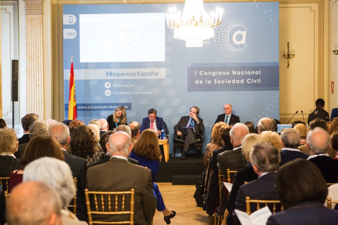 Participaron en esta Mesa: Isabel San Sebastián, Escritora y Periodista; Federico Trillo-Figueroa Martínez-Conde, Letrado Mayor del Consejo de Estado y Embajador de España ante el Reino Unido (2011/2018); José María Mohedano, Secretario General de la Fundación Gregorio Peces-Barba; Aldo Olcese Santonja, Doctor en Economía Financiera y Presidente de SOCIA