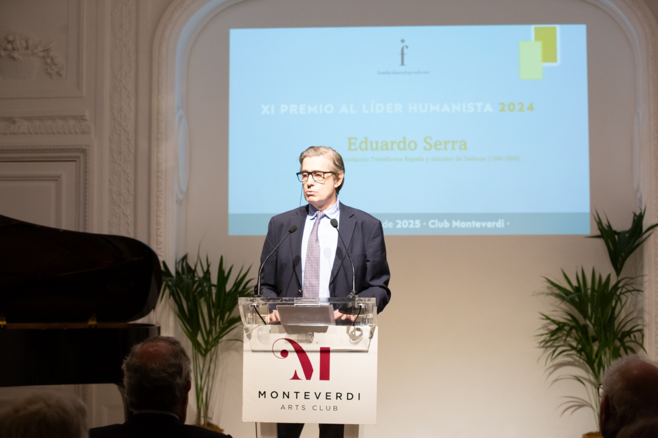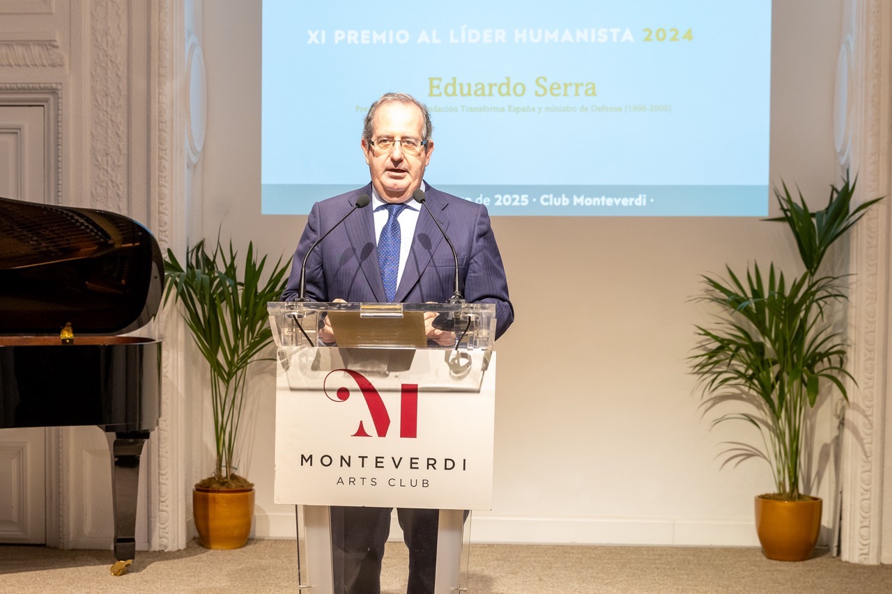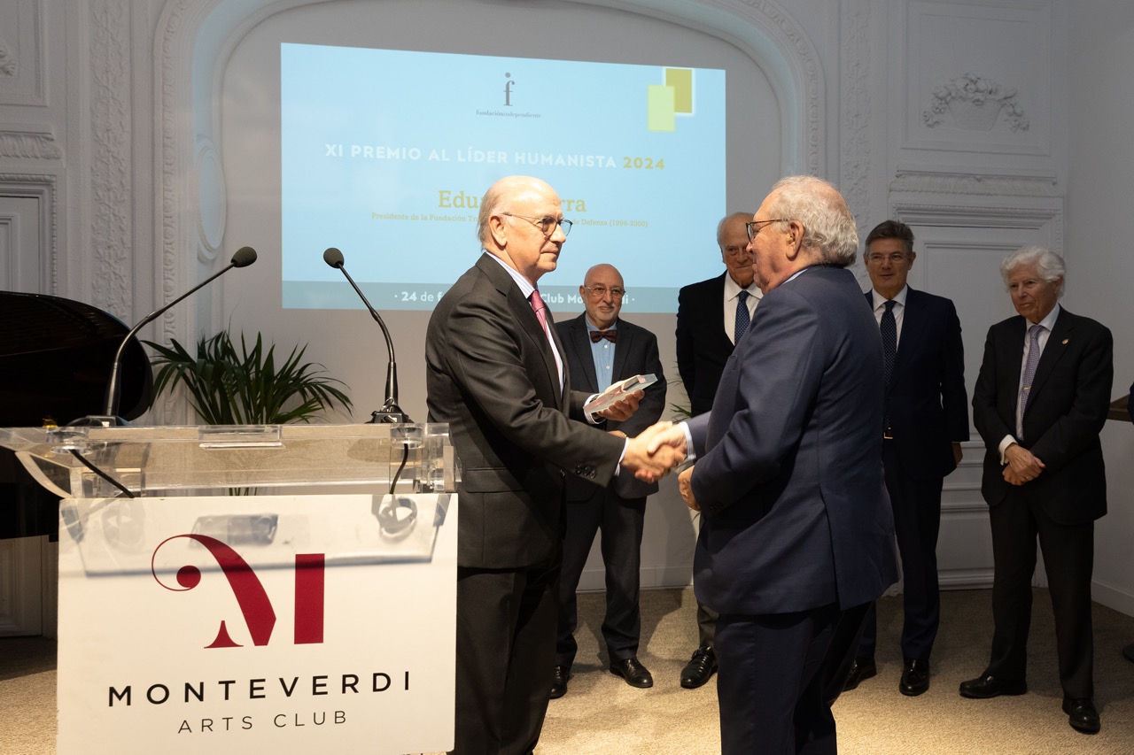 Madrid, 24 de febrero de 2025.- Eduardo Serra, presidente de la Fundación Transforma España y ministro de Defensa 1996-2000, ha recibido el XII Premio al Líder Humanista 2024 que concede la Fundación Independiente «por su amplia trayectoria como humanista, su generosa contribución pública y su compromiso con la sociedad civil».